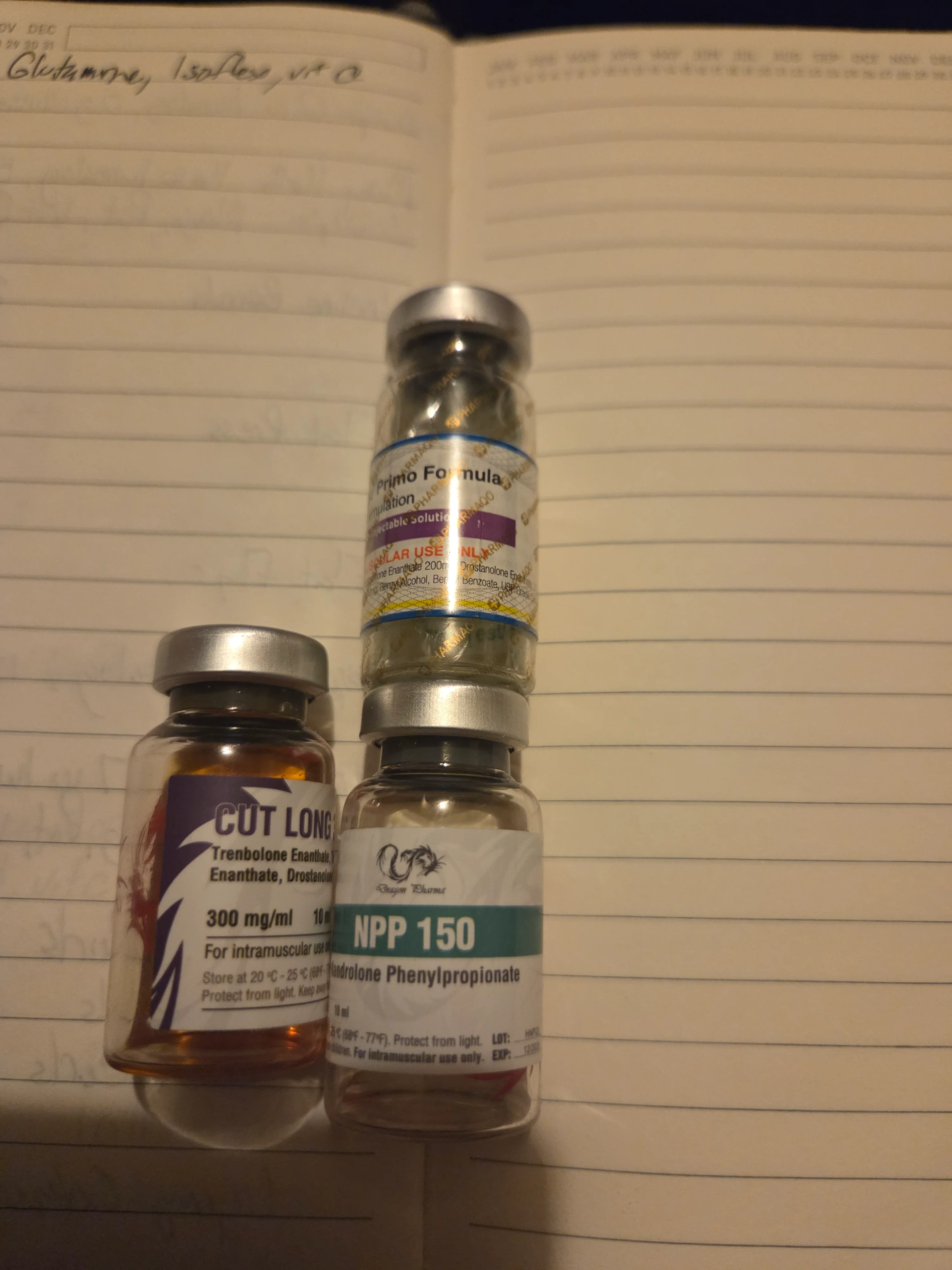 Cycle 2. Half cc of EQ mixed with half cc of Trenbolon Acetate taken every other day. Anavar 30mgs a day