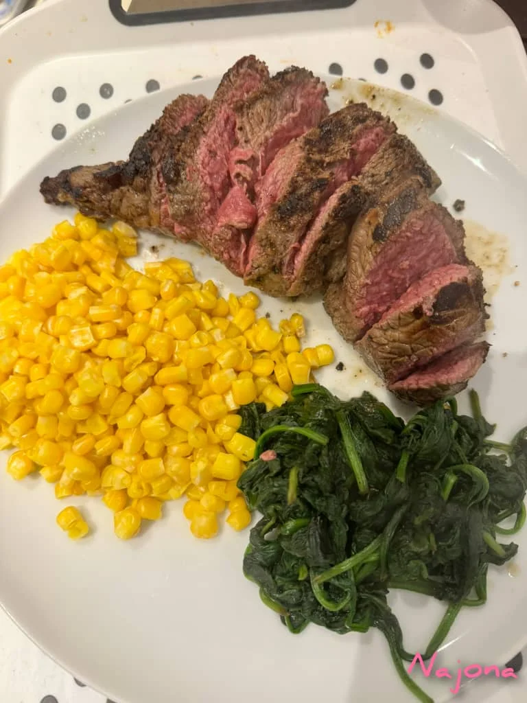 *My post workout meal 16oz Steak, wilted spinach and sweetcorn.