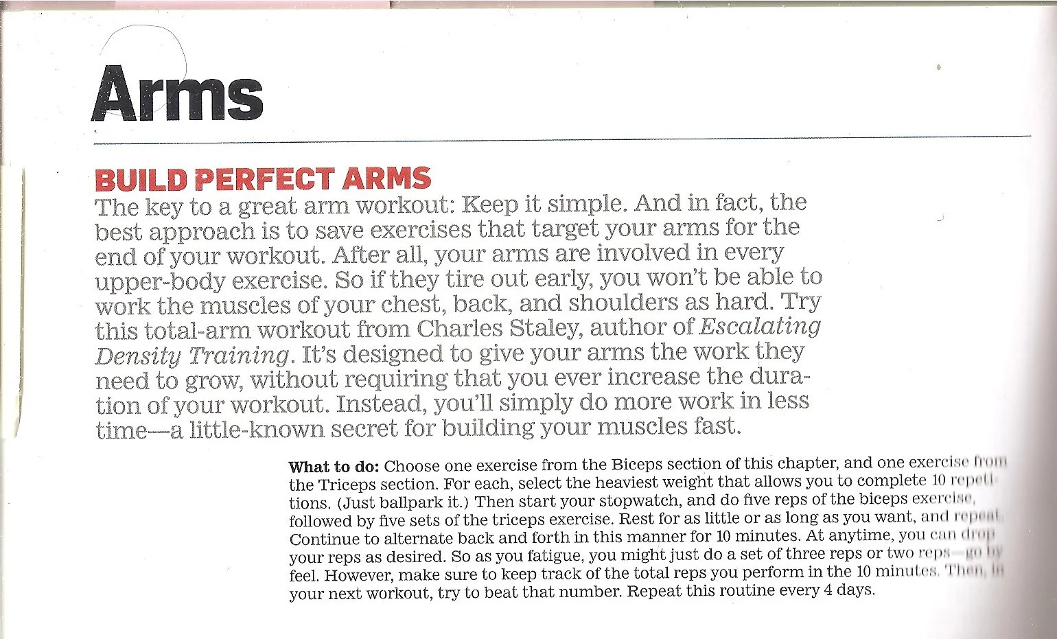 Does that mean to do 10 reps of a bicep exercise and then do 5 sets of 10 reps of a tricep exercise. Then repeat that for 10 minutes? Is this correct?