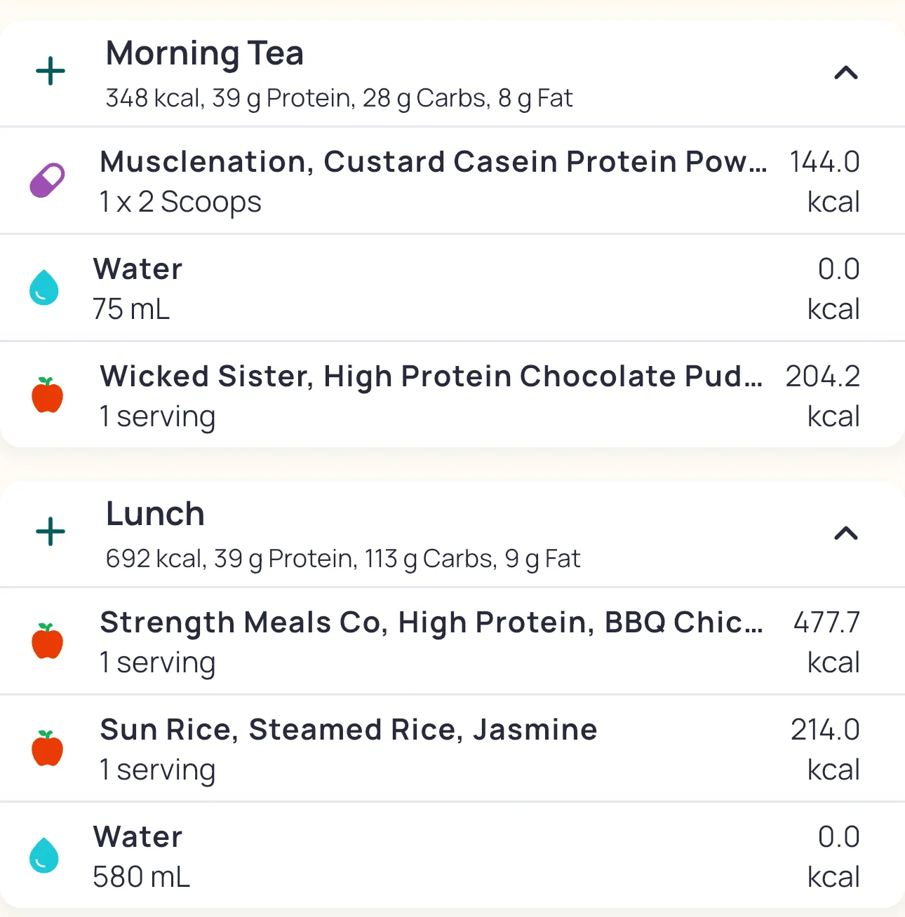 Morning tea taken post-workout due to bodywork appointment, combining breakfast and morning tea into one sitting. Digestion seems to have handled things without any problem, which is nice. Meals so far as attached.