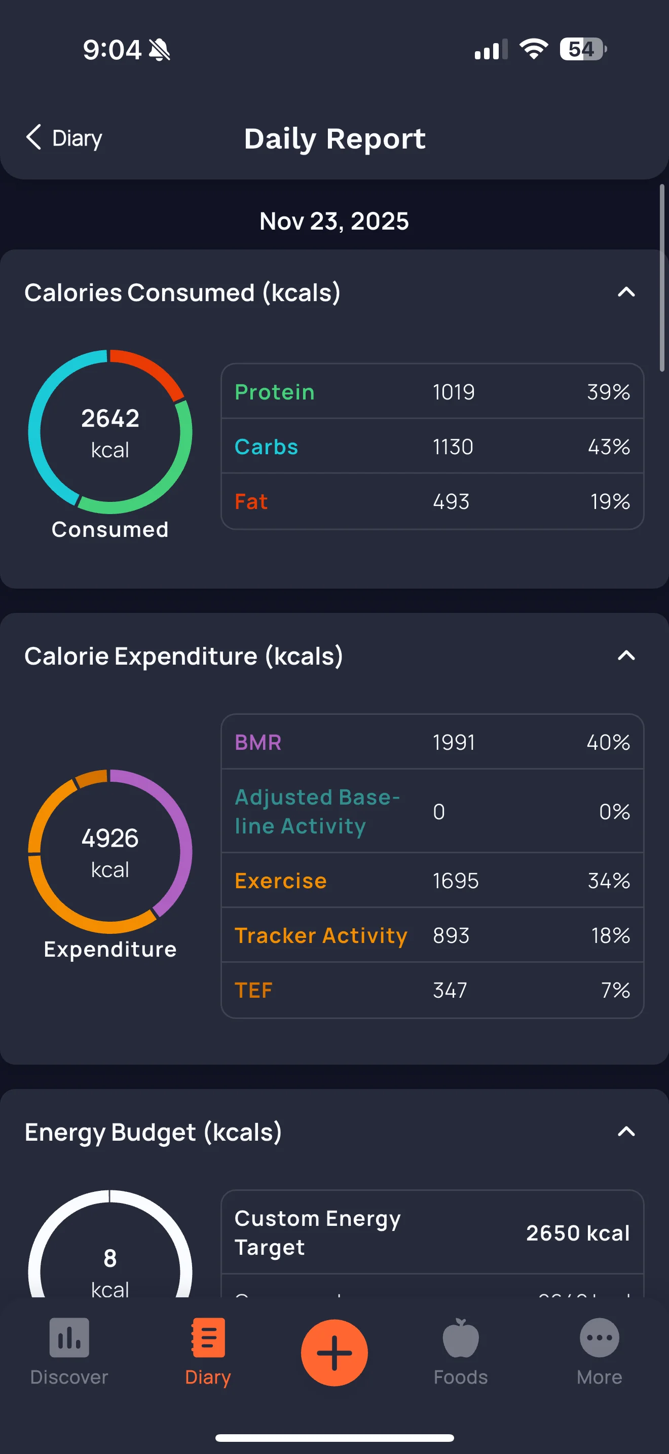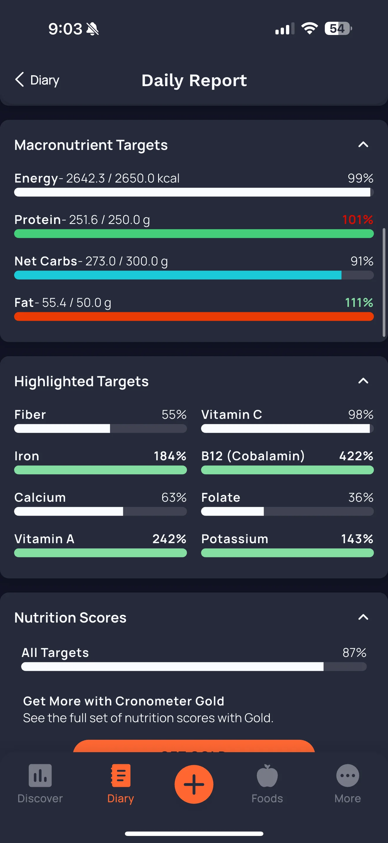 Calories are being held steady at around 2600 and still seem to be losing, back in the gym for legs tomorrow.