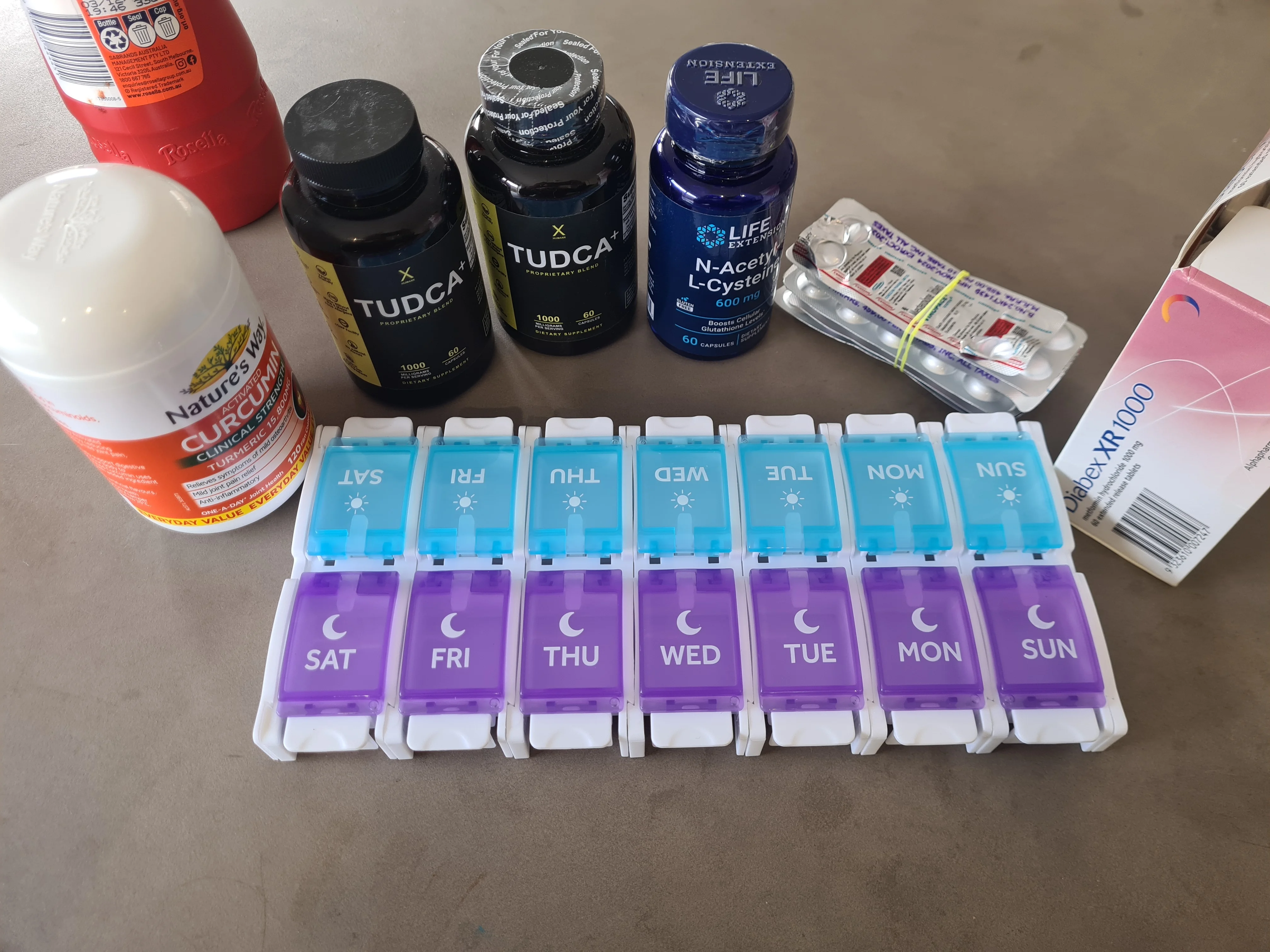 Organised all my sups today, curcumin,tudca,metformin,nac AM/PM making it easier to remember..
