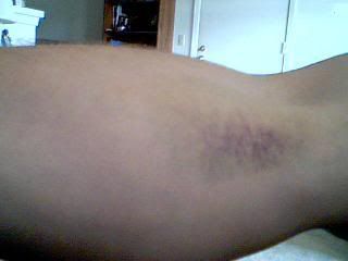 So I went on Thursday to get my blood work, cause my BP has been high. They took their sample and off I went. I woke up today with a nasty looking bruise. Think I should be worried?