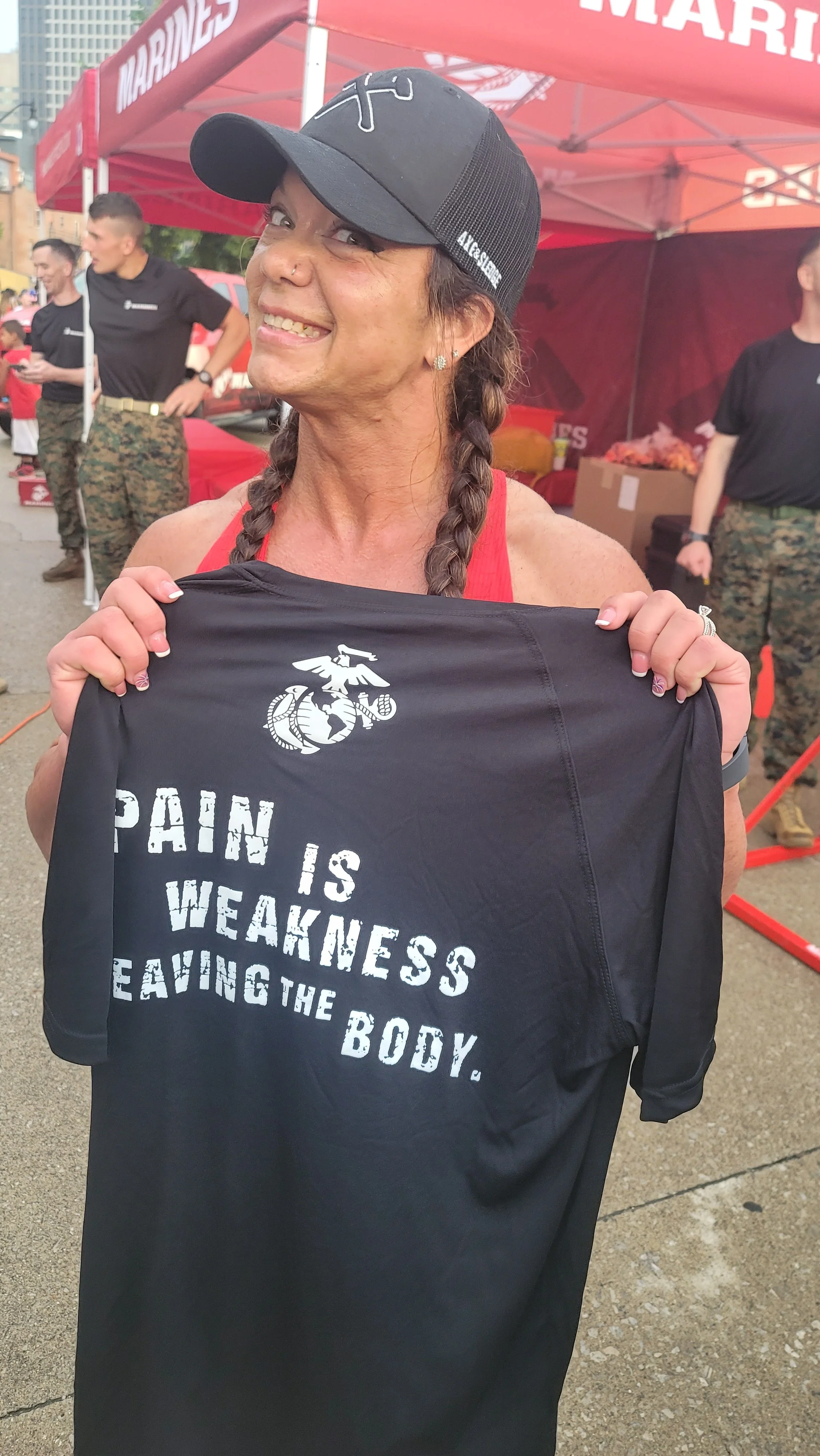 @dadbod82 pain is weakness for sureWe made her do the Marine pull-up challenge last night at Boom. People saw her get carried up there by our son and gathered around. She did 20(our son did 17) and was cheered on the whole way. Pretty cool to see. We have a video. I'll find a way to share it.