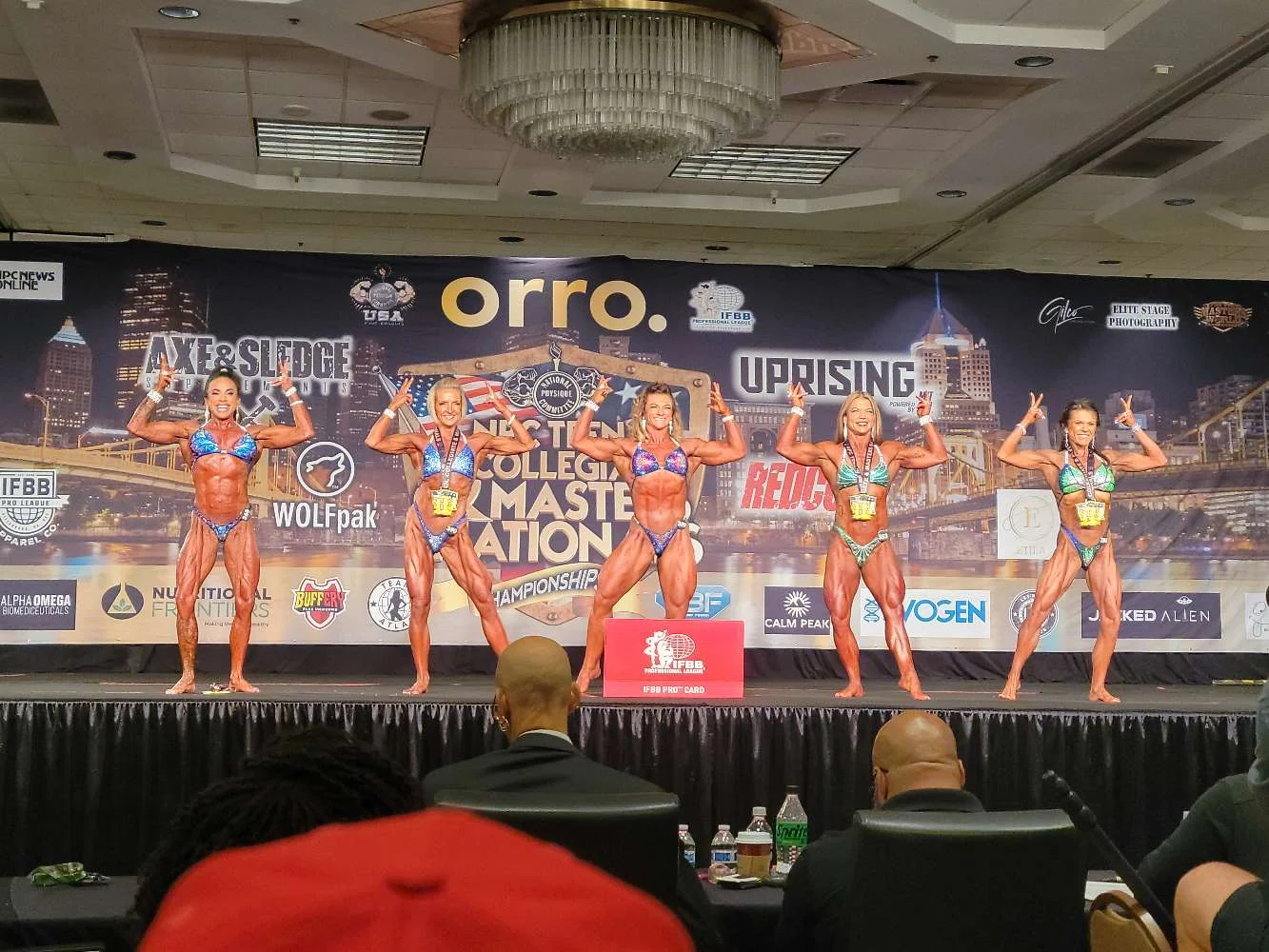 so far our gym has done well. One guy on her team got 2 2nd, 3rd and 2 5th and another from the gym earned his pro card. She's next followed by a bikini girl on Saturday.
