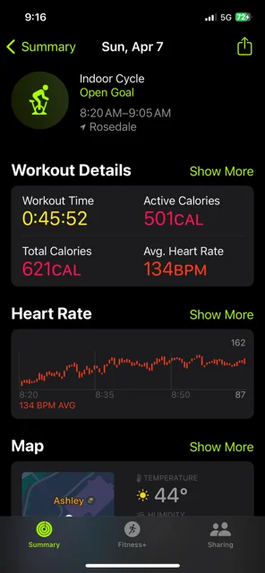 Cardio 45 min on a spin bike