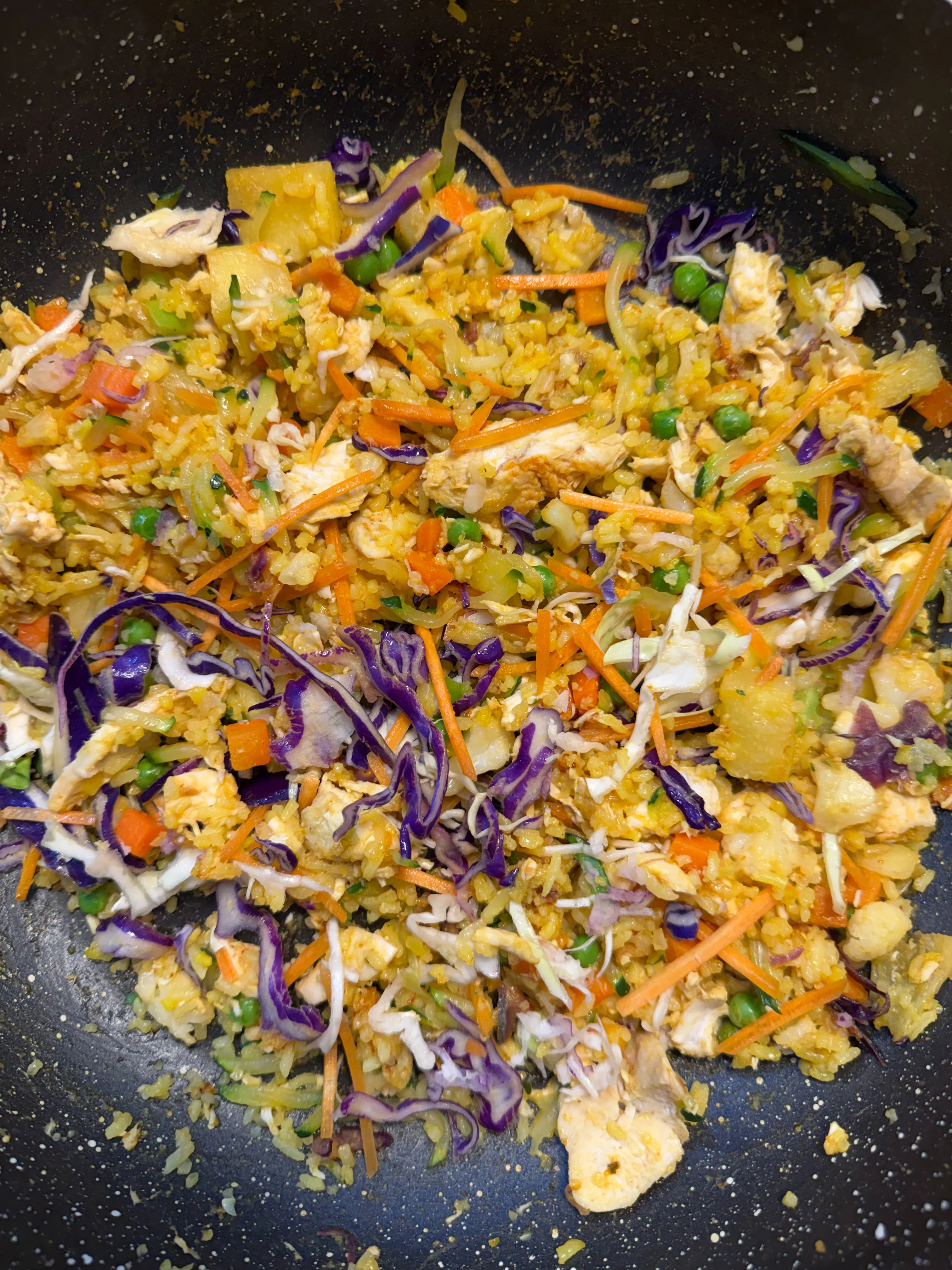 + chicken, rice, kale, broccoli, pineapple, chilli