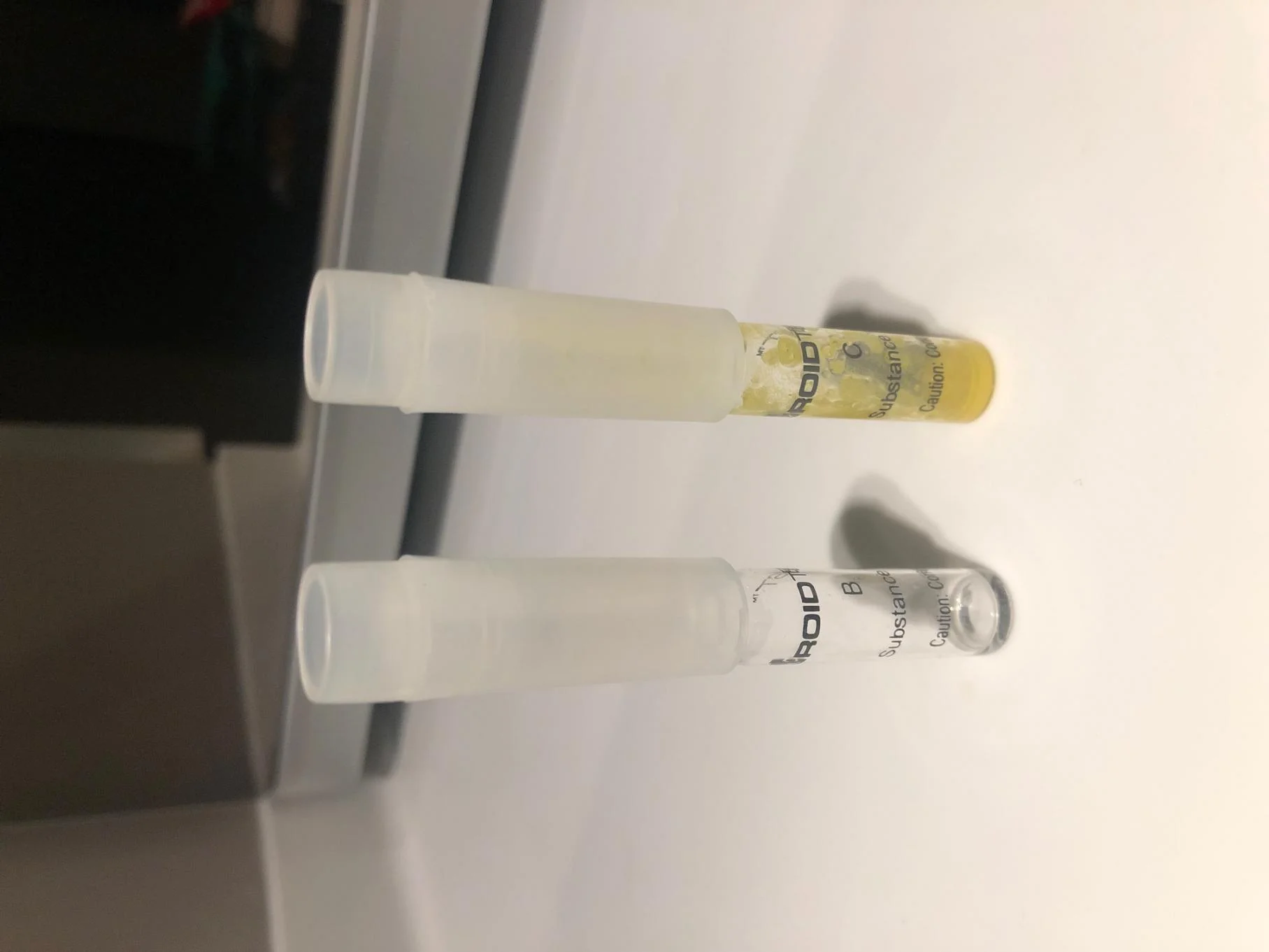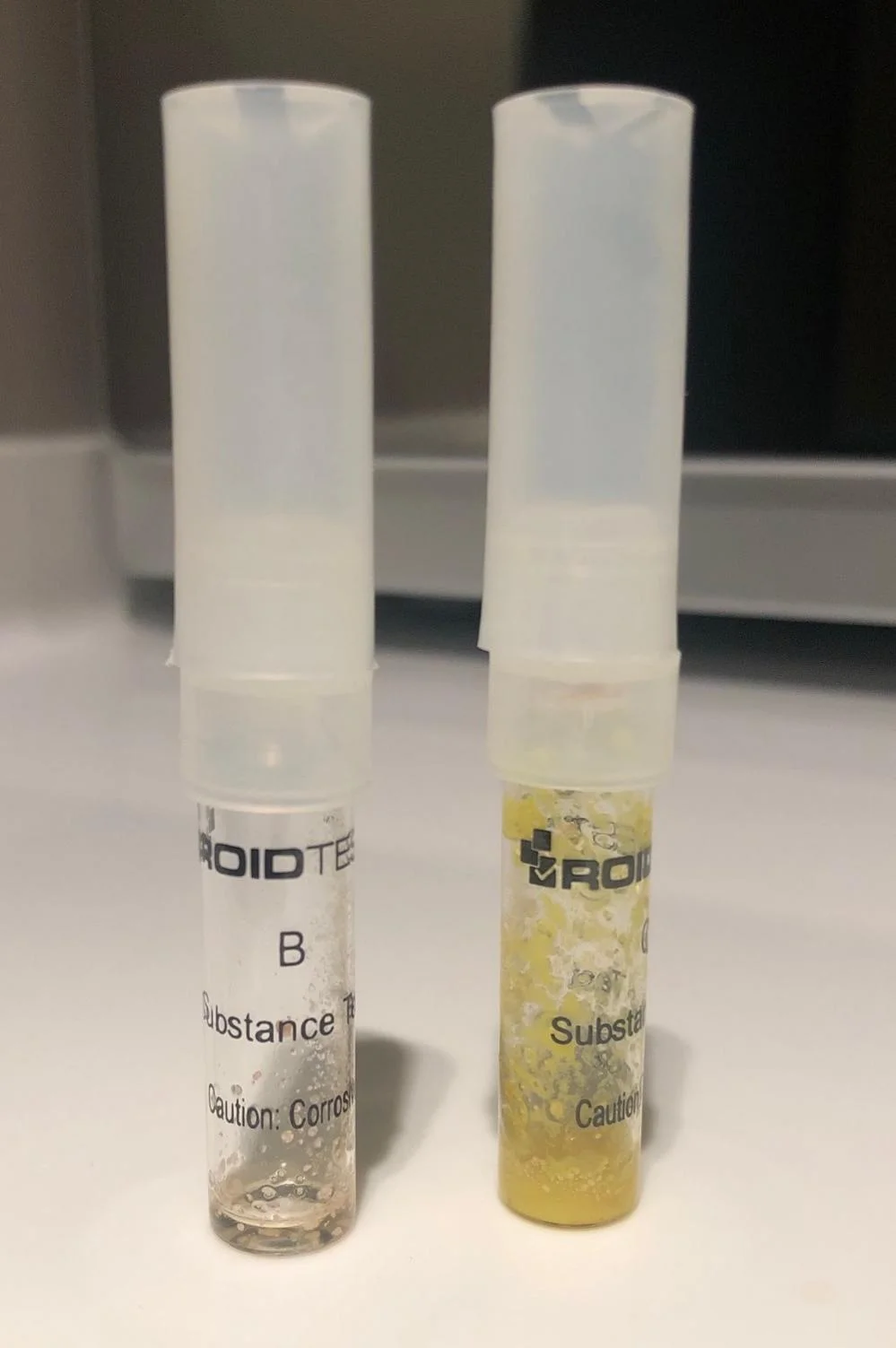 I followed the instructions and the result showed the colors expected when positive in oxandrolone, BUT the substance B that is supposed to turn peach within seconds after mixing didn't change immediately its color, only after a few minutes (4-5) and then stayed peach for +15mins. That makes me wonder whether I didn't put enough product, the pills are watered down or are mixed with something else rather than oxandrolone.