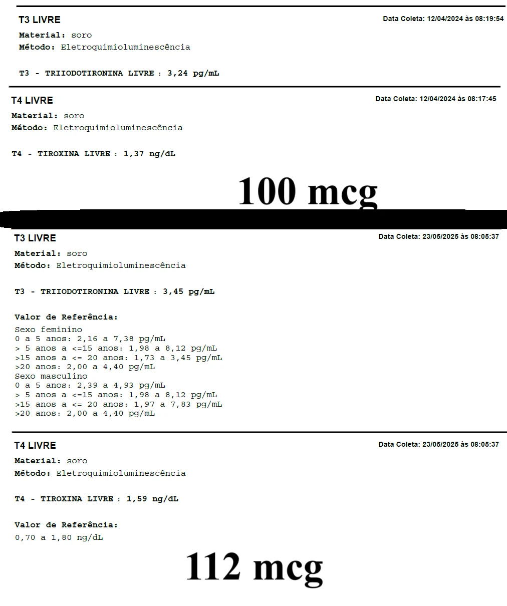 this is the comparison between 100 and 115 mcg of t4