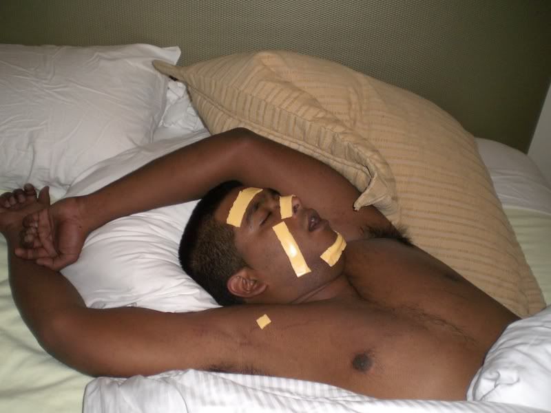 put cheese all over my boys face while he was passed out and the heat from his body kindof melted it to his face.. so we dont tell him and we go downstairs.. couple hours later guess who we see walken around with cheese on their face..