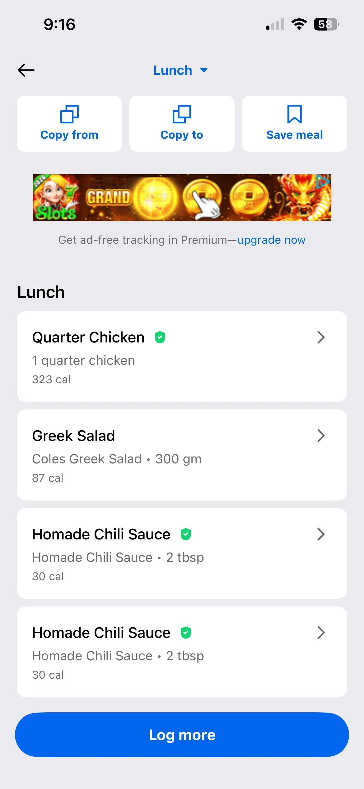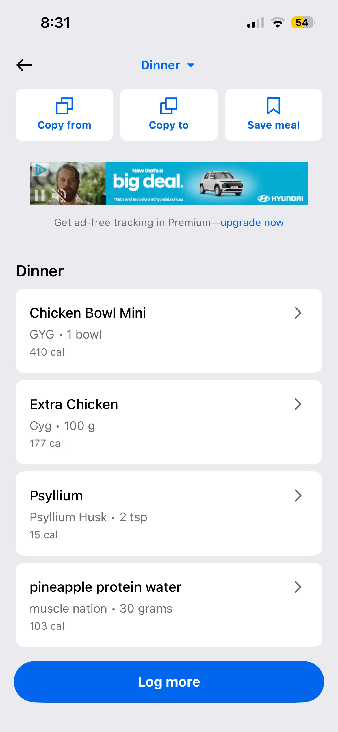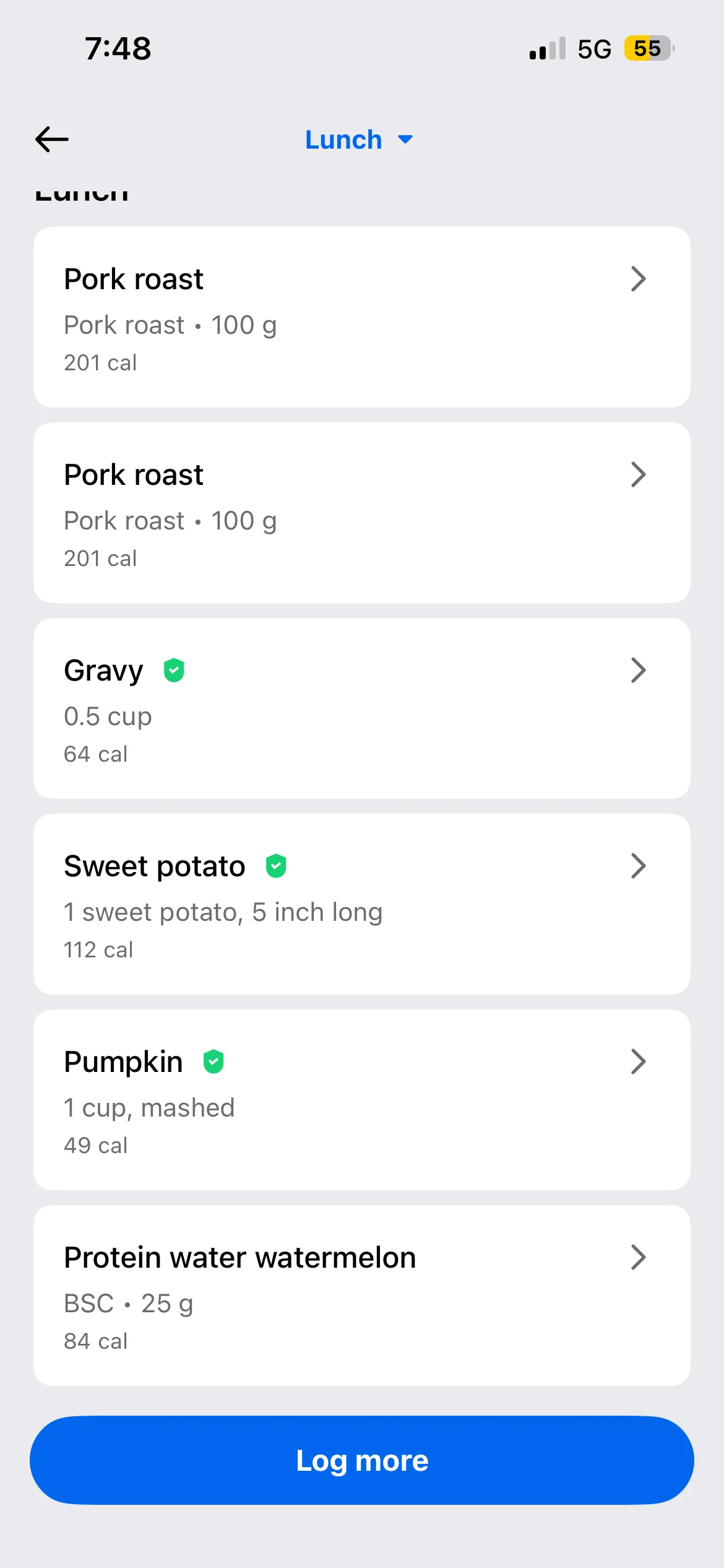 Food log below