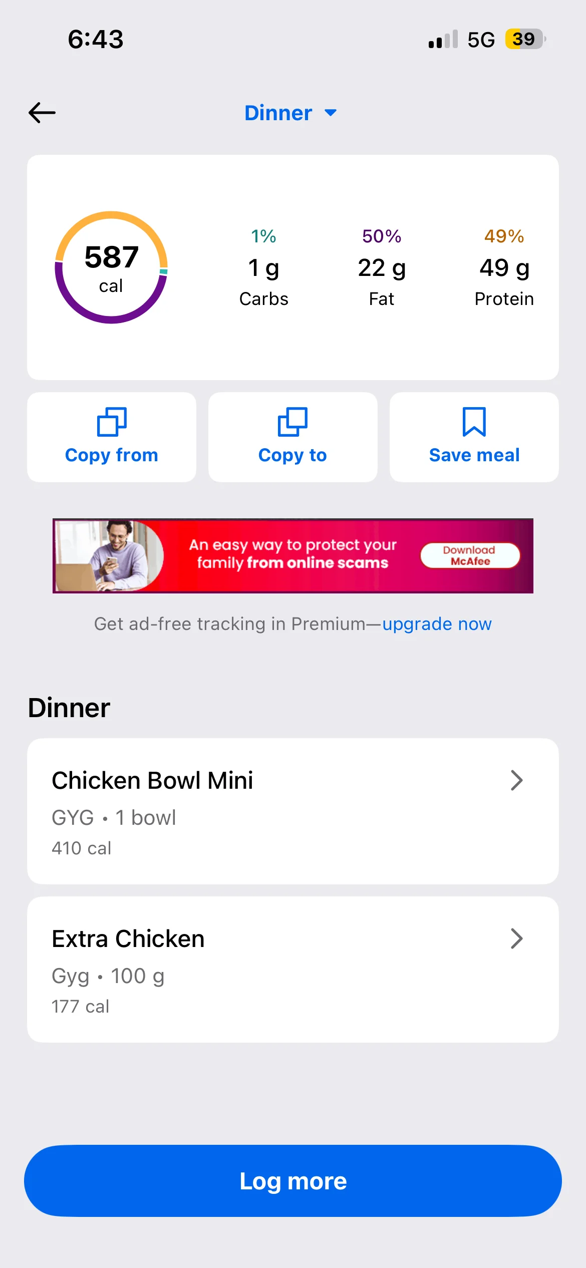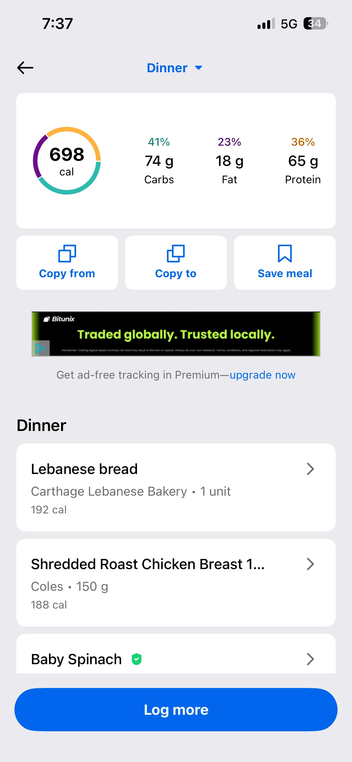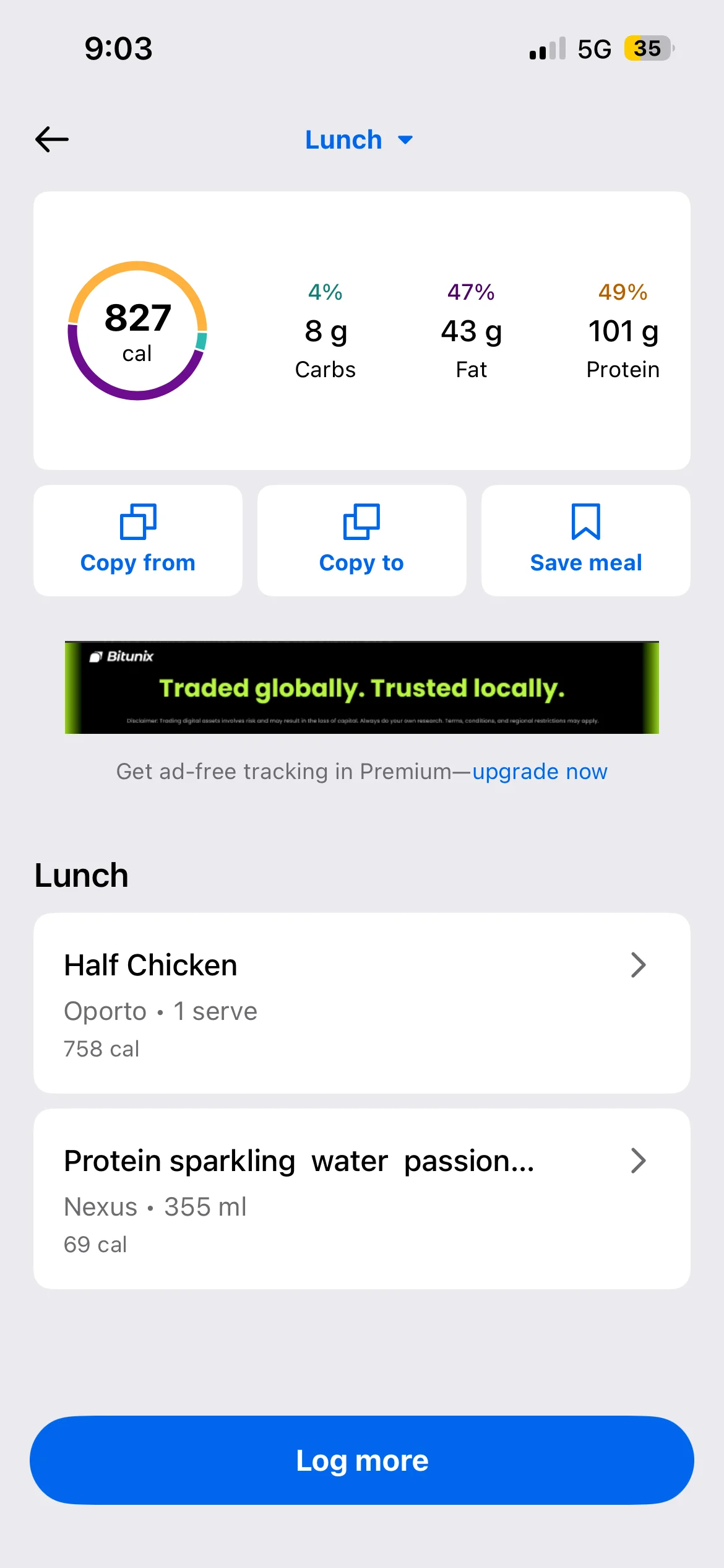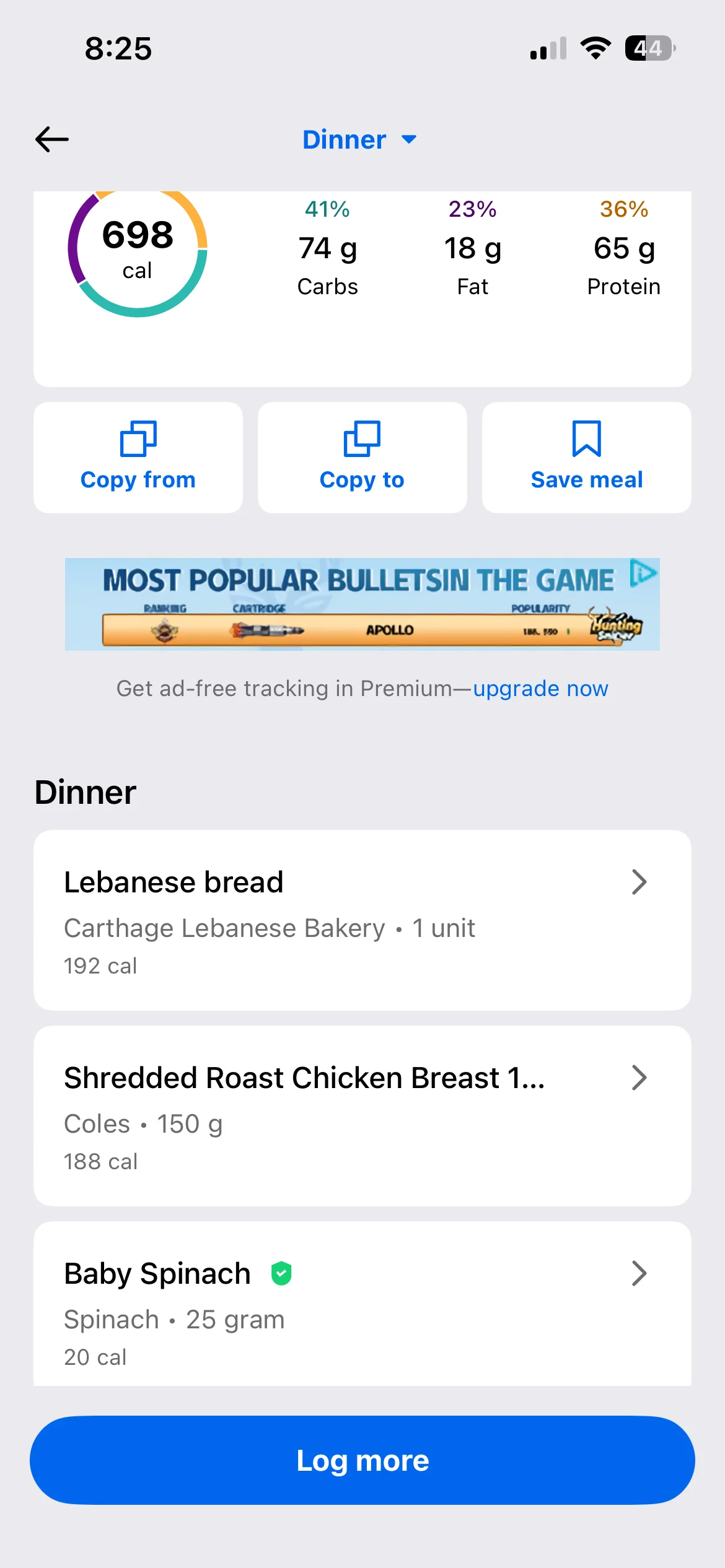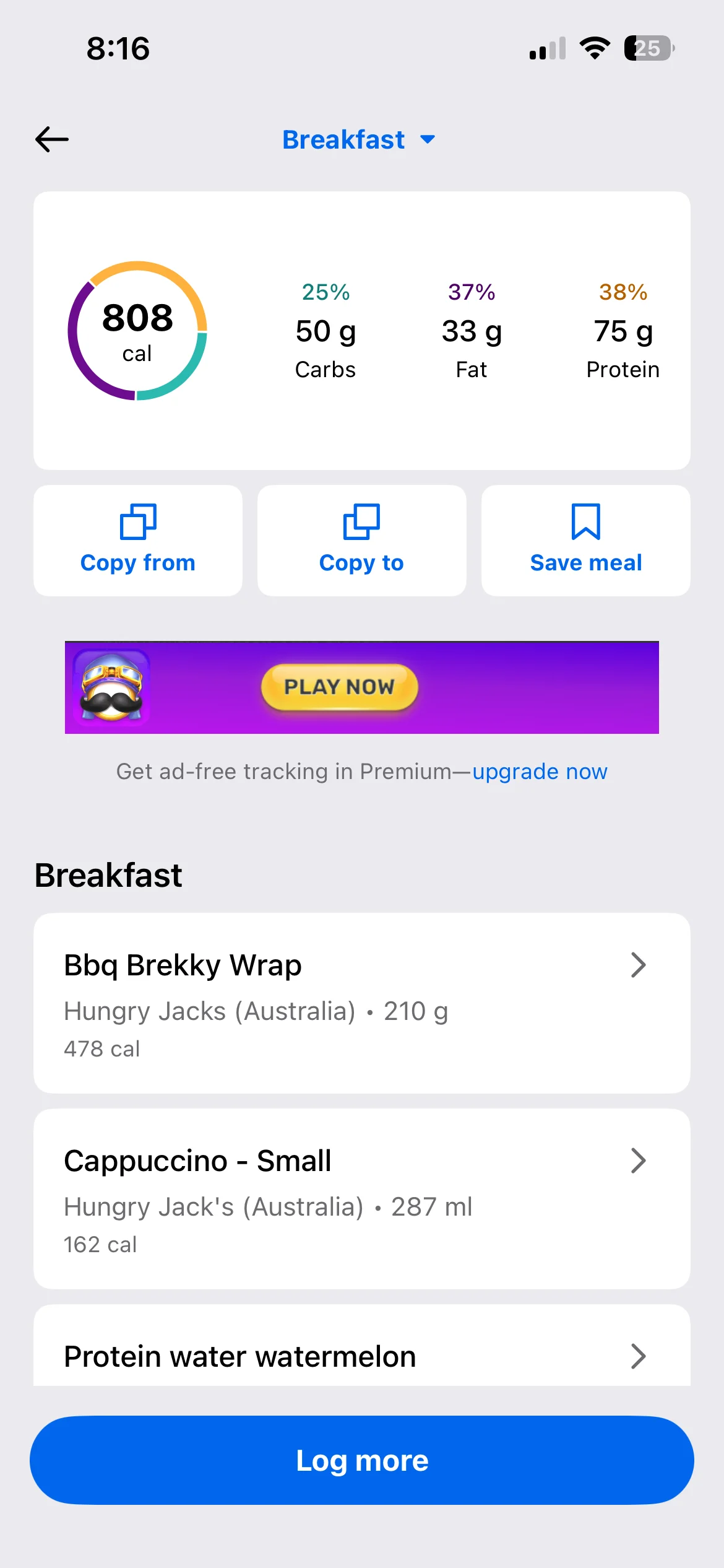 Honestly don’t even know what my lunch and dinner were they were both stews with different types meat and I have no idea to calculate the macros on it. I’d use an AI photo calorie tracker next time. To make it more accurate anyway i