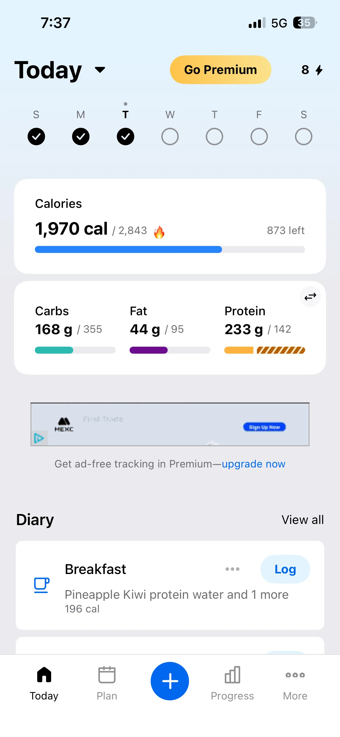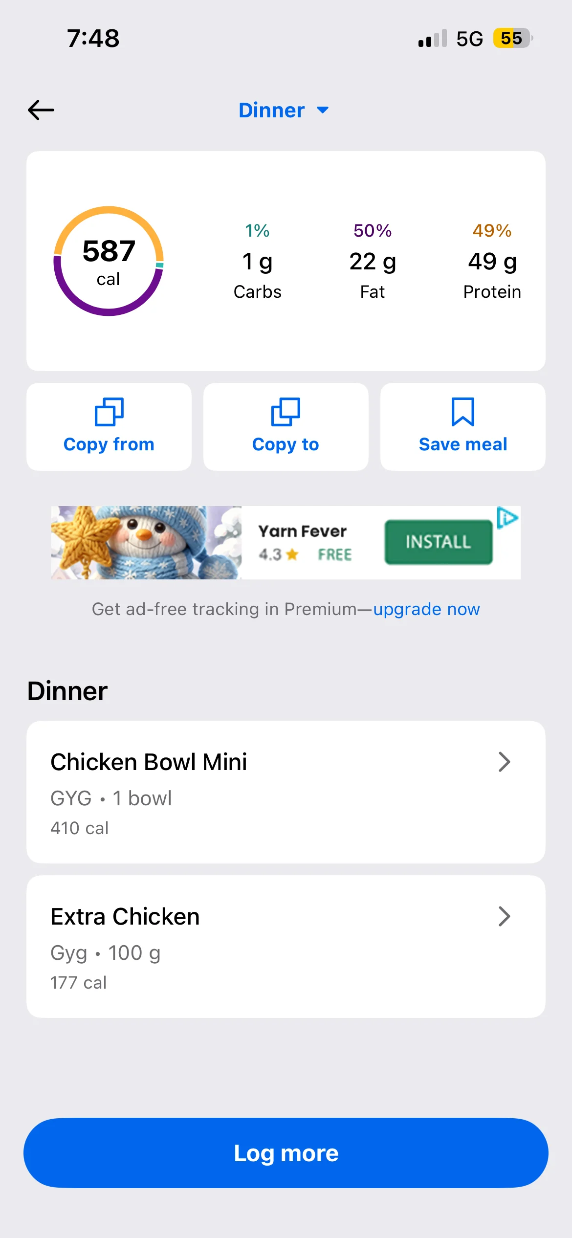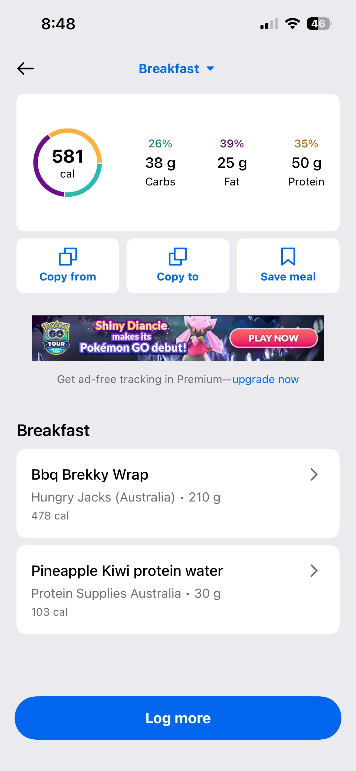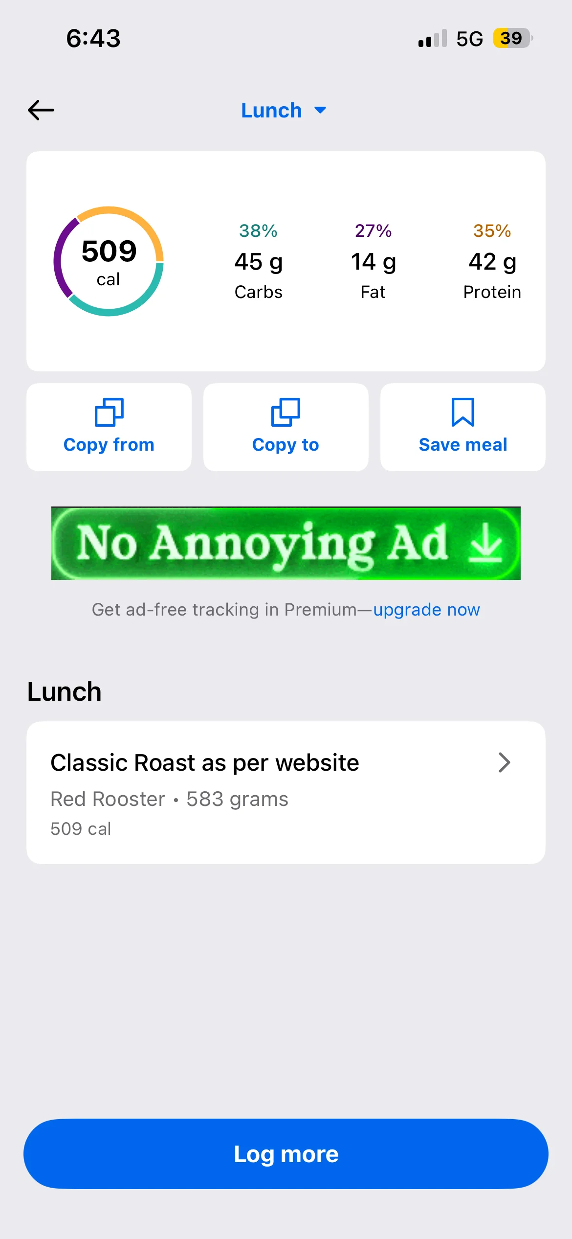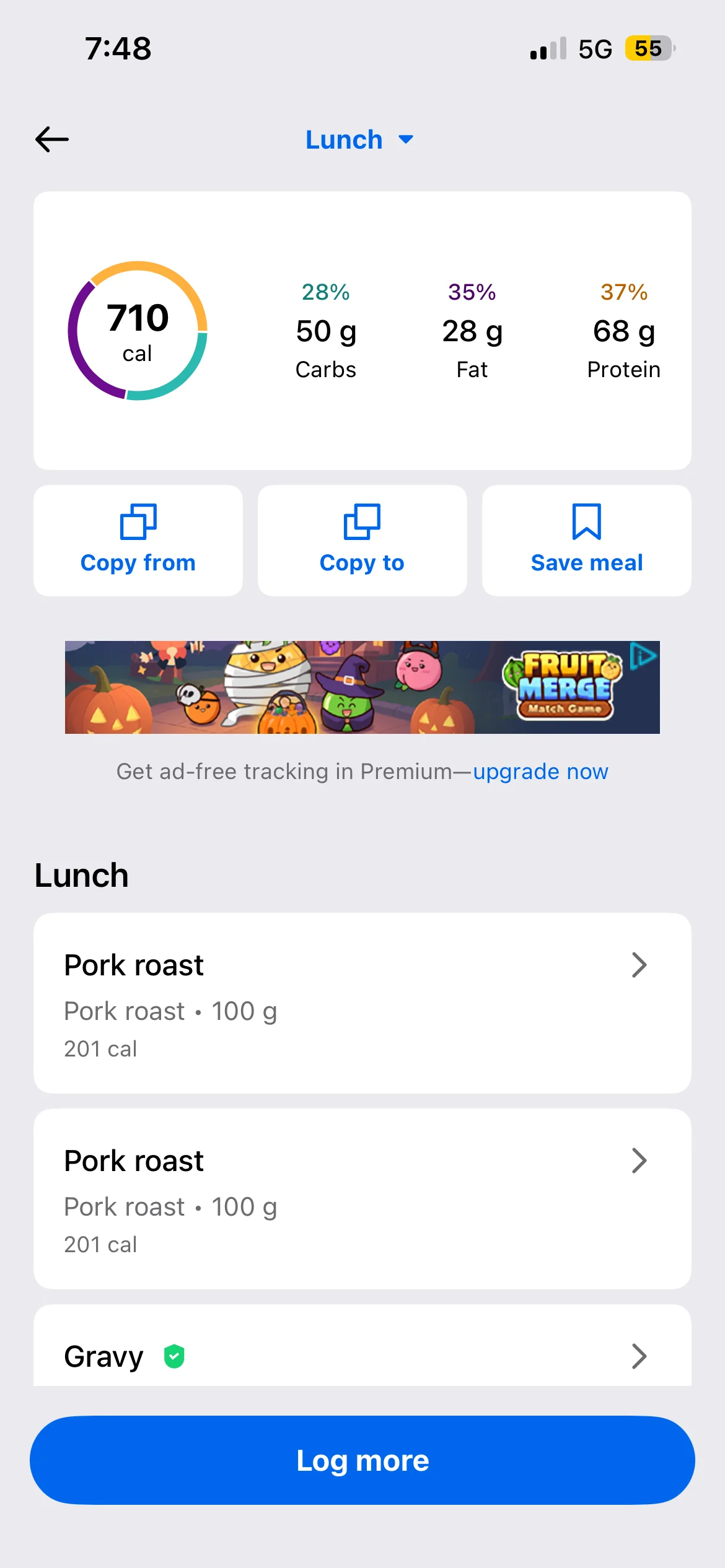 Honestly don’t even know what my lunch and dinner were they were both stews with different types meat and I have no idea to calculate the macros on it. I’d use an AI photo calorie tracker next time. To make it more accurate anyway i